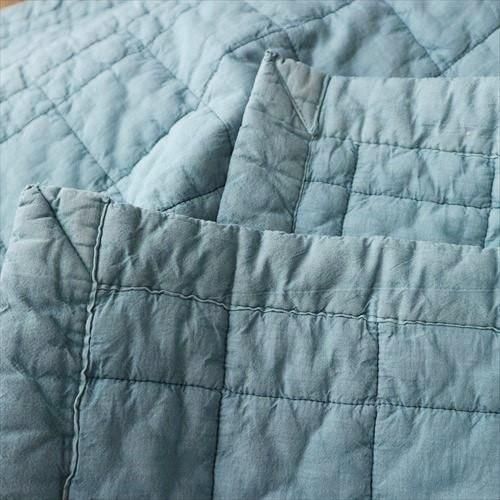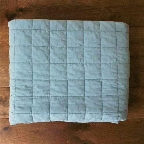 イブル四角柄は6.5cm間隔のミシンステッチの正方形がきちんと並び、雲やSTRIPE柄に比べるとキルティングの間隔が広いため中綿のふーんわり感が実感していただきやすいと思います。ふかふかとした手触り…キルティングでゴロンと寝転んでも痛くないです。