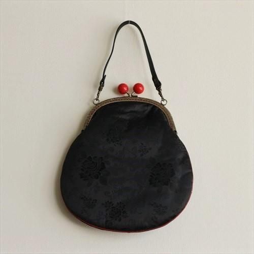 丸玉のひねりも大きくキャンディーのよう…開け閉めが片手ででき使いやすく、がま口の金物と持ち手の牛革がクラシカルな雰囲気です。