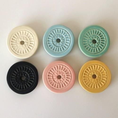 たくさんの花びらが中心から均等に放射状に広がる愛らしいデザインをしたこちらの文様は菊花(국화、クッカ)のよう…古くから「長寿」「不老不死」の象徴として親しまれ韓服やうつわにも多用される伝統の文様です。作山のカラフルな釉薬がより愛らしさを増しています。
