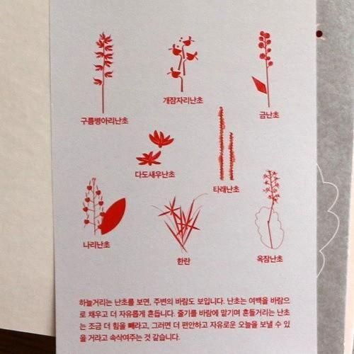 サンシュユの深くて酸っぱい赤色からインスピレーションを受けて作られました。白の高級用紙に赤と銀のカラーとシルバーで印刷し、口紅のような紅い箔がのせられています。紅葉のように濃く深い赤色やまろやかなピンク、そして涼しい風のような銀色。東洋的な静けさと、西洋的な洗練を感じます。